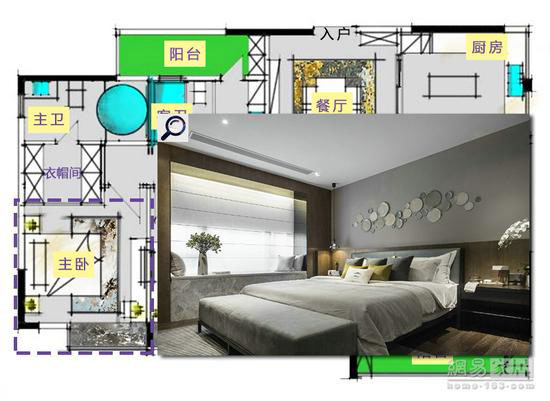 在增設主臥衣帽間的改造上,設計師并沒有滿足于簡單增設一個小小衣帽間,而是將主臥進行側隱處理,增加主臥私密性的同時也塑造了走道效果設計,在主臥增設的衣帽間亦充當進出主衛的通道,如此改造增加的衣帽間也更加寬敞。