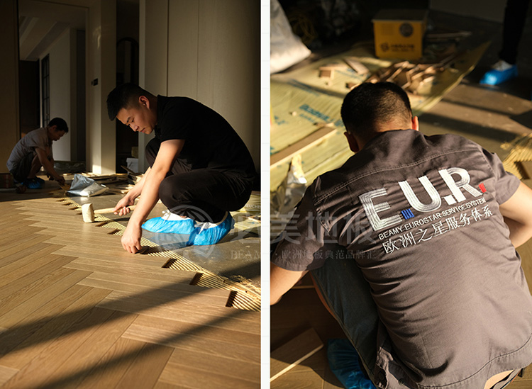歐洲進口地板的安裝工藝要求,是高于國內(nèi)標準的,必美的施工團隊是經(jīng)過嚴格的專業(yè)培訓的專業(yè)施工隊伍,以過硬的技術、貼心的服務贏得了無數(shù)業(yè)主的青睞。