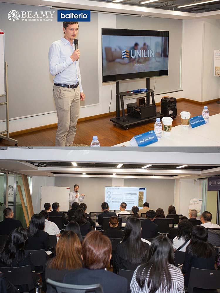 此次寶地雅中國之行,遠不止于參觀交流。雙方就未來產品趨勢、健康家居生活體驗升級等關鍵議題,進行了全面而深入的探討。訪問次日,一場以“煥新2026:三層實木新紀元”為主題的寶地雅2026新品培訓會在必美集團總部隆重舉行。這場前瞻性的新品品鑒與培訓會,全球范圍內首次提前揭開了寶地雅未來在三層實木地板產品技術革新與設計風尚的神秘面紗,更為雙方后續的市場推廣奠定了堅實的基礎。